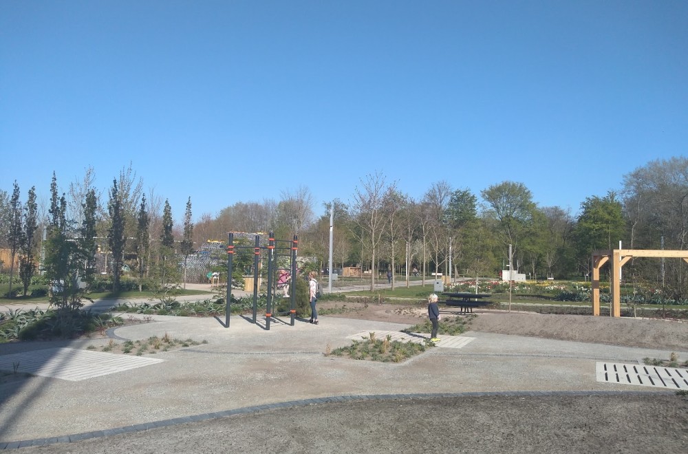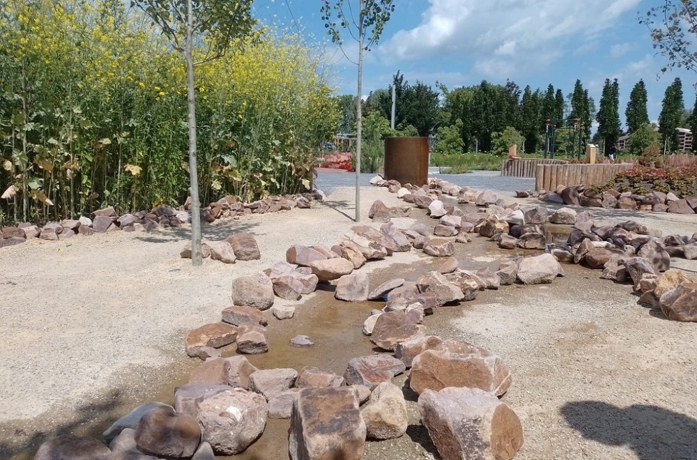 Einen Monat nach der Eröffnung im April hat sich das Grundstück in ein frisches Grün verwandelt. Nach häufigem Gießen wachsen und gedeihen die gepflanzten Bäume und Pflanzen nun. Und das Ergebnis sind wunderschöne Bilder! Jetzt lohnt es sich, das Grundstück zu besuchen und sich inspirieren zu lassen, z. B. für einen naturnahen Garten oder als nachhaltige Anwendung im öffentlichen Raum.