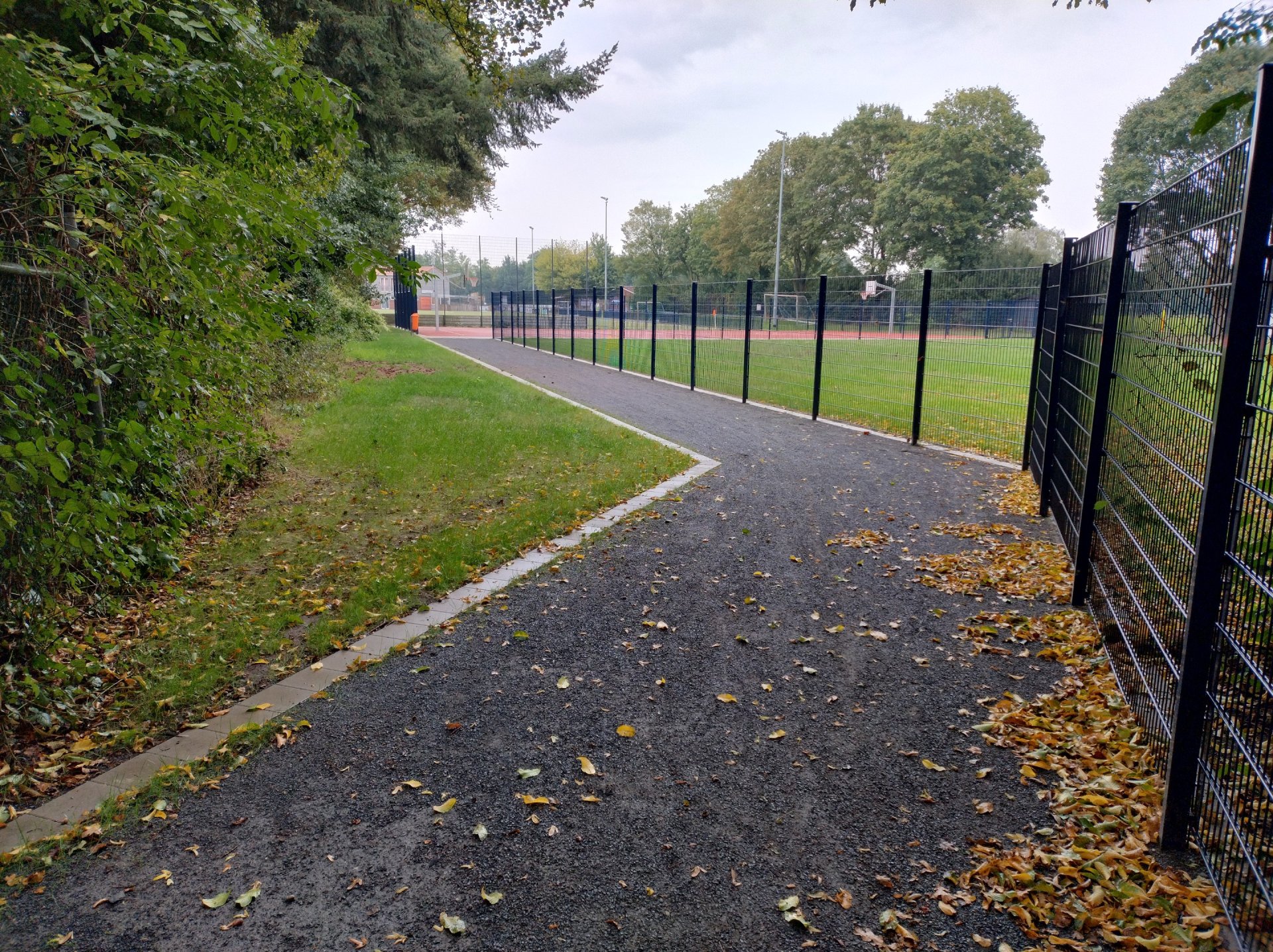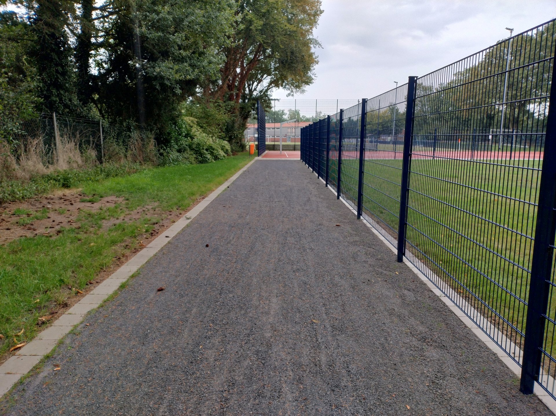 Im Sommer 2025 hat die Firma Werner Lüske aus Haselünne die Außenanlagen des Sportvereins "VFL weiße Elf" in Nordhorn erneuert. Von der Euregiostraße bis zum Basketballfeld wurde einen Fußweg mit einer Deckschicht KoMex Anthrazit gebaut.
