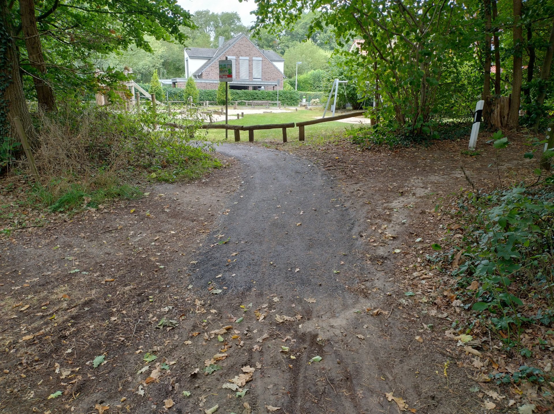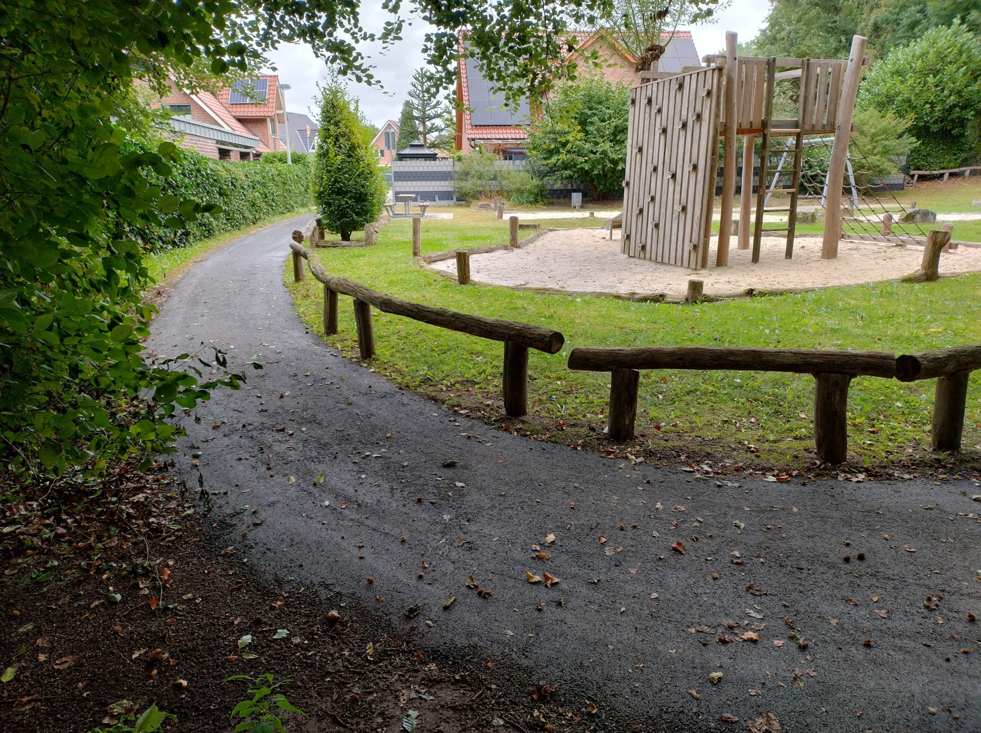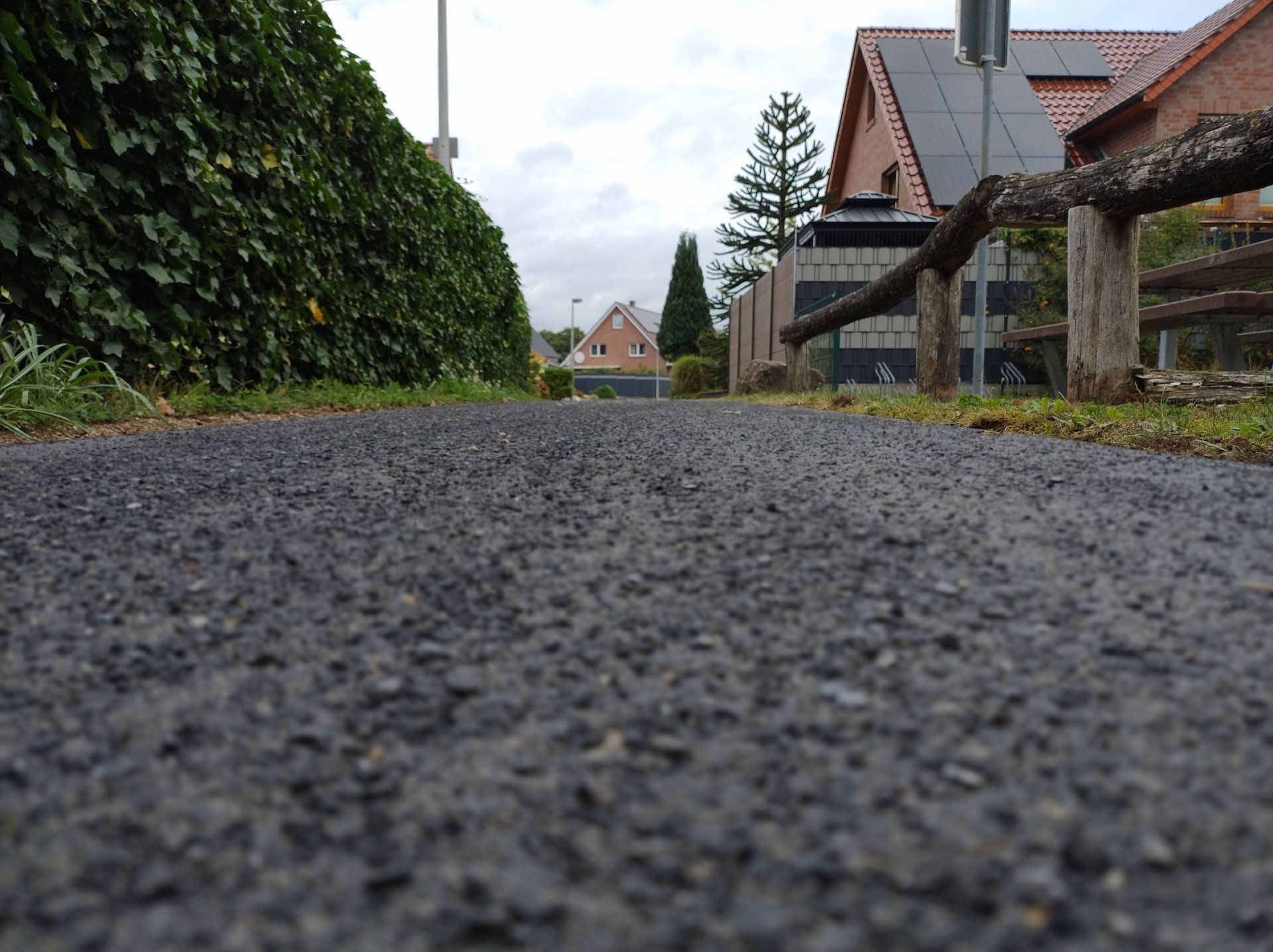 Im Sommer 2025 hat Koers in Lingen an der Ems der Weg am Kinderspielplatz "Werner-von-Beesten-Straße" erneuert. Für die wassergebundene Wegedecke wurde vom Bauhofleiter das Material KoMex Anthrazit gewählt.