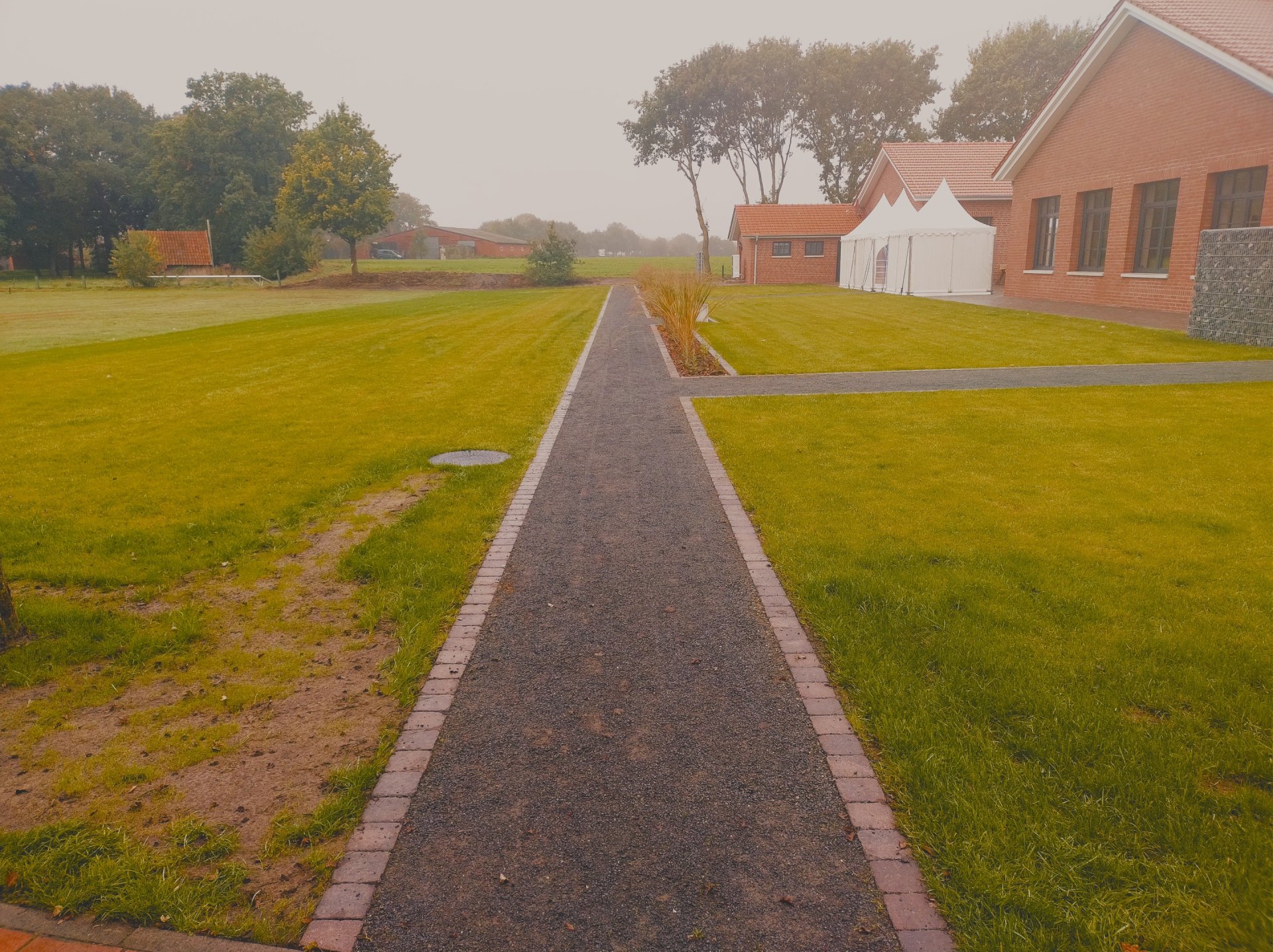 Die Firma Lapis Linga aus Lingen hat im Sommer 2025 die Aussenanlagen hinter dem Vereinshaus erneuert. Auf dem ehemaligen Sportplatz wurde einen neuen Garten errichtet. Auf den Wanderwegen wurde einer Deckschicht aus Koers KoMex Anthrazit eingebaut.