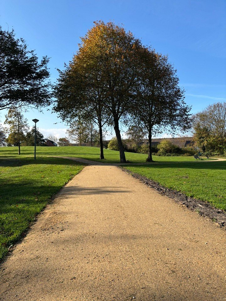 In de wijk Zeeburg in Noordwijkerhout ligt de KoMex gele variant verwerkt. Midden in het groene buurtparkje komt de gele halfverharding prachtig tot zijn recht. De frisse kleur vormt een warm contrast met het weelderige groen eromheen, kinderen kunnen hier heerlijk spelen, een balletje overtrappen of wat dan ook, zo kun je hier ook enkel een wandeling maken om even te ontsnappen van de dagelijkse druktes.