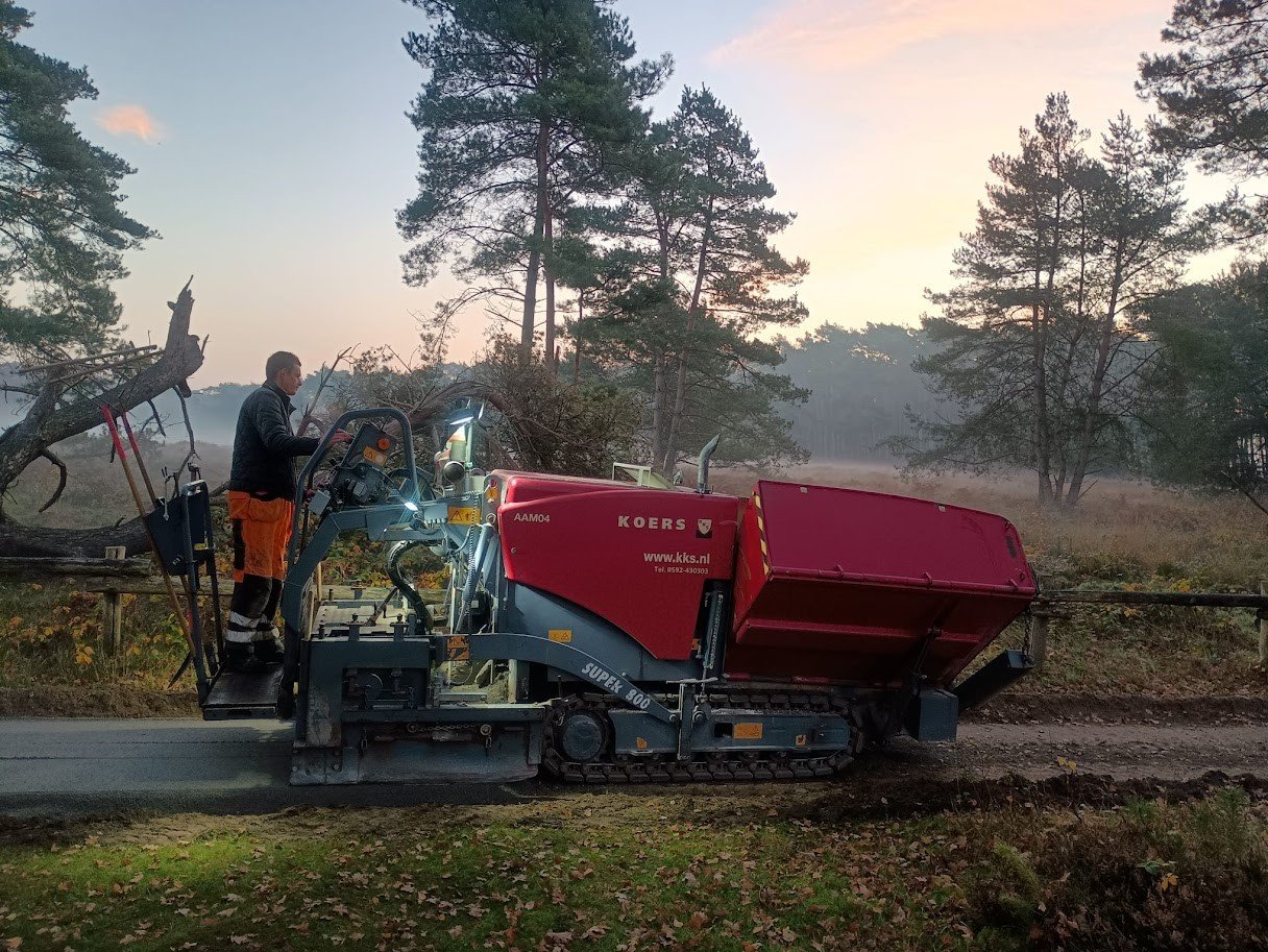 Voor de aanleg van de fietspaden is bewust gekozen voor DurEko-mix, een waterdoorlatende halfverharding die uitstekend past binnen een kwetsbare en ecologisch waardevolle omgeving. Het materiaal biedt een hoge mate van stabiliteit en comfort voor fietsers, terwijl het tegelijkertijd een natuurlijk ogend oppervlak heeft dat harmonieus opgaat in het landschap van de Veluwe.
